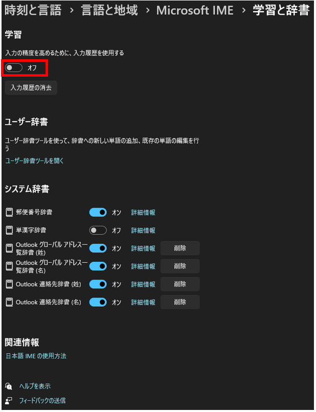 WindowsPCの入力履歴学習機能をON(OFF)にする トラブルシューティング