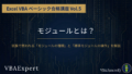 このページは、VBAエキスパート(Excel VBA ベーシック)試験の合格を目指す方のための解説記事です。公式テキスト第3章「モジュールとプロシージャ」の内容のうち、モジュールについて取り上げます。